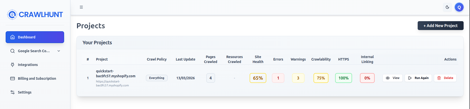 Add your Shopify store in CrawlHunt